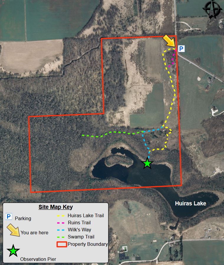 Huiras Lake State Natural Area contains a seepage lake, dry-mesic forest, and an assortment of wetland natural communities in northwestern Oazaukee County. Owned by the Ozaukee-Washington County Land Trust (OWLT), Huiras Lake is open to a wide range of outdoor activities, including hiking, birding, fishing, hunting, boating (though there is no easy way to get a boat on the water here), and cross-country skiing.