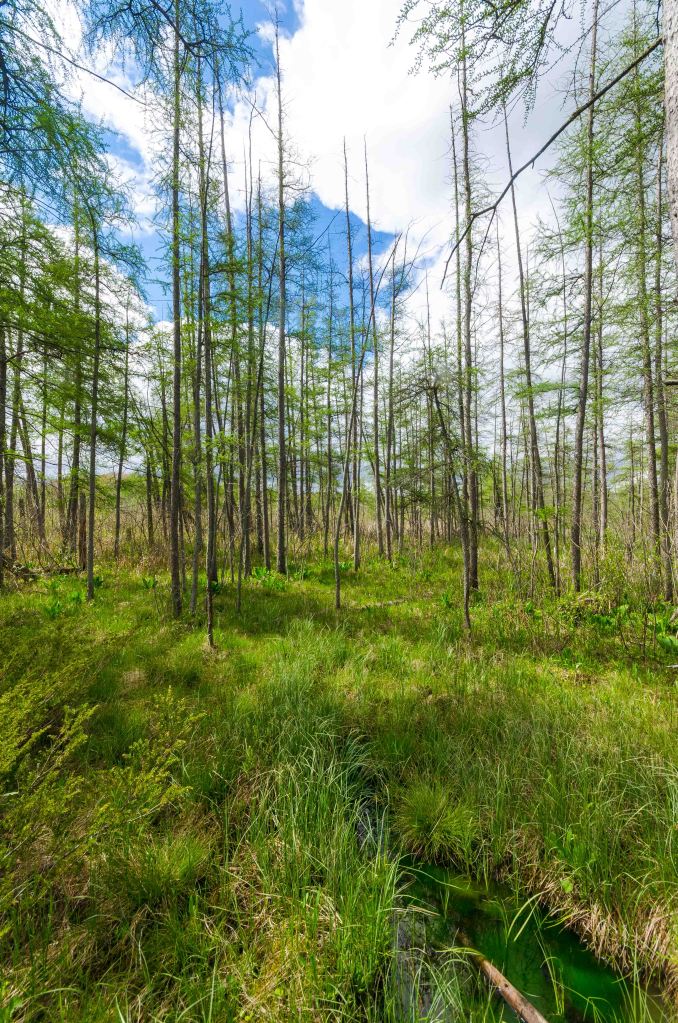 In reviewing information for this blog post, I noted that there are 3 bodies of water within the SNA, while the DNR’s webpage notes 2 lakes. Cedar Lake is found in the northeast portion of the natural area, while the eponymous Crooked Lake borders the southern portion of the SNA. Not being a hydrologist, perhaps the central bod of water is/was considered part of Cedar Lake before filling in with vegetation over the years. As noted, the IAT crosses into the natural area at its southern border before departing the SNA near Division Rd. Standard hiking boots/shoes will suffice for on-trail exploration here, but rubber boots or waders are recommended if venturing into the wetland areas.