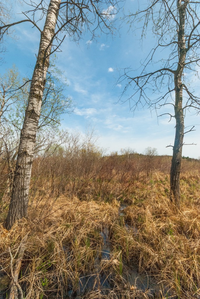We continue our tour of Swan Lake Wildlife Area with a visit to a portion further classified as Swan Lake Wet-Mesic Prairie. This state Natural Area features a southern sedge meadow, wet-mesic prairie, and an aspen/oak forest. Also found within the wildlife area are its sister SNAs: the recently posted Swan Lake Tamaracks and the next post, Swan Lake Sedge Meadow & Barrens. All 3 SNA’s are located just east of Portage and approximately 7 miles south of the subject of the last post, French Creek North. Swan Lake Wet-Mesic Prairie SNA can be accessed via Ontario St on the south side of the Portage city limits. The street dead-ends in a de facto parking area and the SNA lies immediately south of the road.