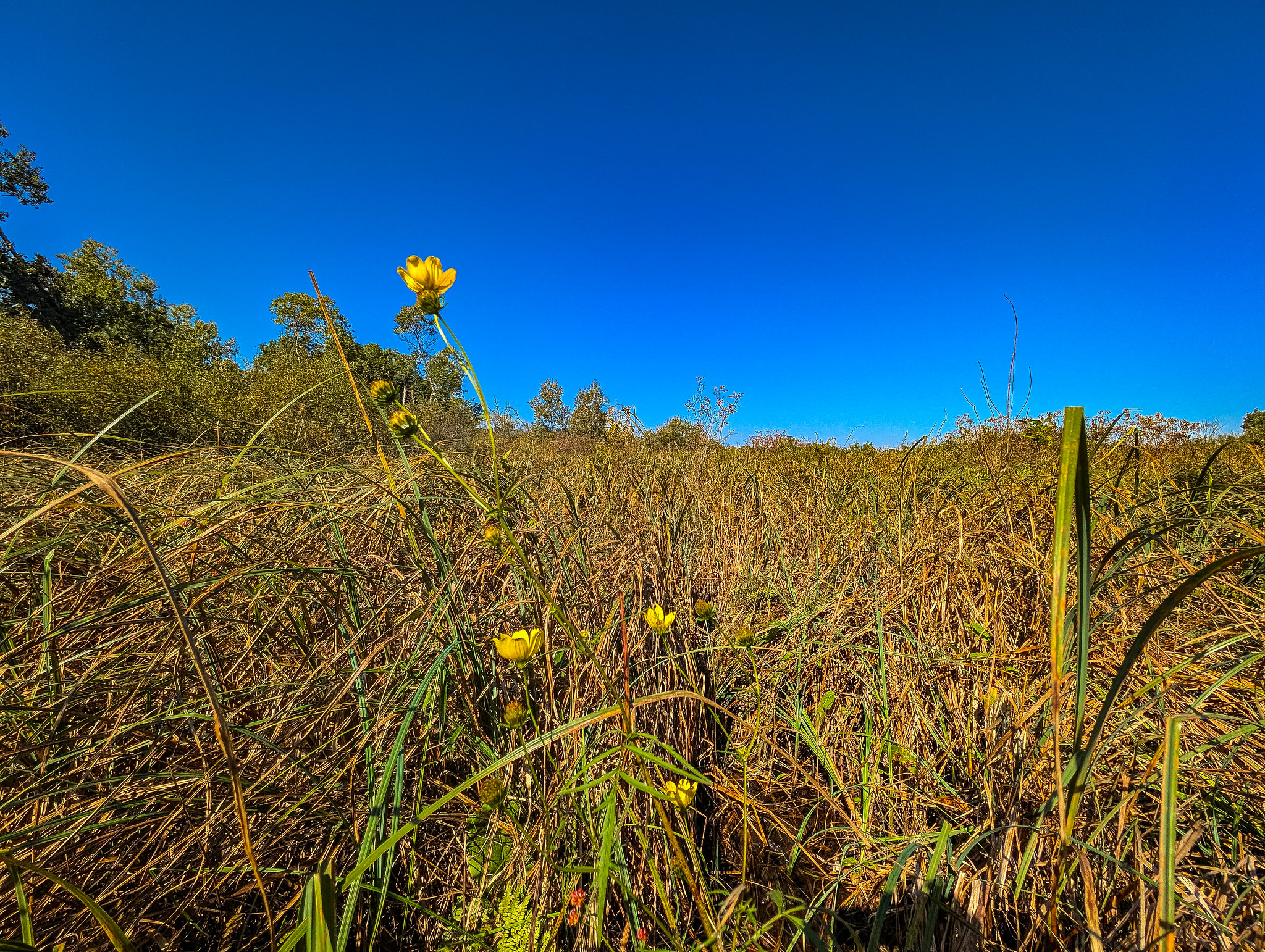 The road to the natural area (Ontario St) isn’t too bad as of my last visit. Over the years, I have travelled across all manner of gravel roads and this was fairly tame. I have visited Swan Lake Wet-Mesic Prairie on two occasions, once in early spring and once in mid-fall. I would classify both visits as off-peak. Very little flowering activity was observed. Interestingly, water levels were similar on both occasions, generally mid-calf in most areas, but ramping up close to the tops of my rubber boots in numerous localized spots. Thus, I would suggest waders to give yourself a bit more “security”.